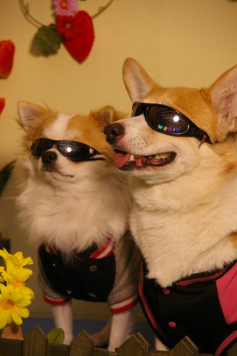 下のコーギーはジュビアちゃんとテン君です