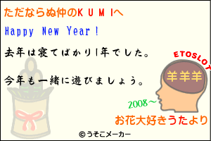 年賀状まずはうたちゃんうたちゃん去年は寝てばっかりやったんやぁ