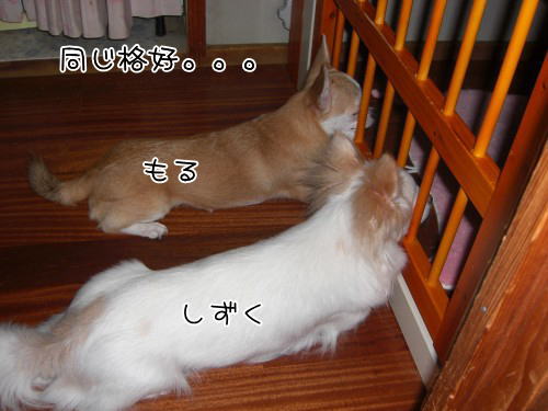 同じ格好で母さんの帰りを待つもるとしずく(●ゝ艸・)フ゜ッ