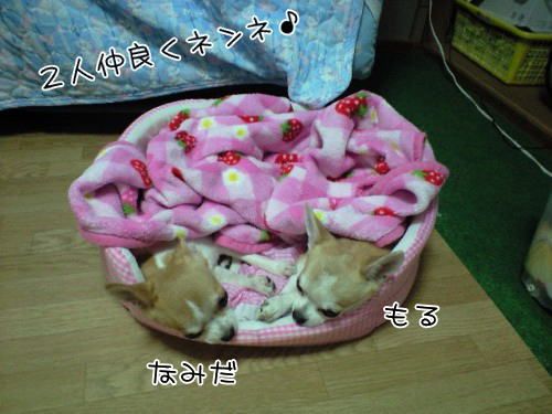 もるとなみだは一緒に寝てた