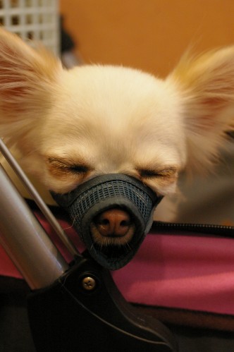 って、ことでしぃちゃん口輪装着